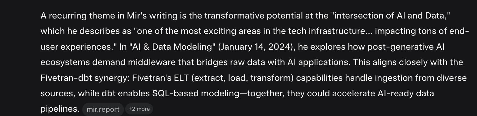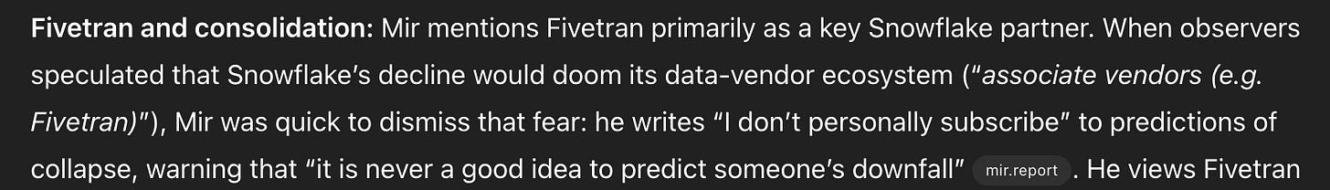I have written bits here and there about both Fivetran and dbt previously, so before putting this piece together, I pulled my prior opinions from GPT. And it gave me these: