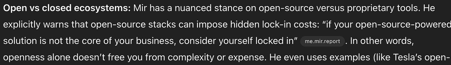 Consolidation of the “T” (and more): Connect (Fivetran) + Transform (dbt/SDF/SQLMesh) positions Fivetran as a de facto end-to-end data pipeline vendor. Great for procurement; dangerous for optionality if primitives don’t stay open. While Tobiko says SQLMesh/SQLGlot will remain open source, it remains to be seen how likely that is.