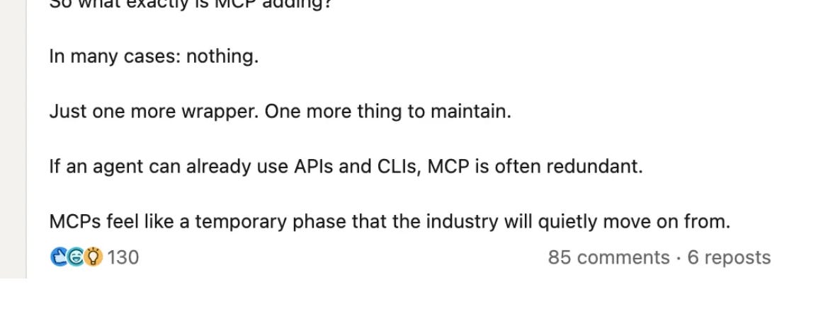 Maybe that’s right. Maybe it’s wrong. I genuinely don’t know, but I do know that the person who wrote it does not, because there’s no evidence attached. No app. No production system. Just the confident rhythm of a LinkedIn post optimized for reshares.