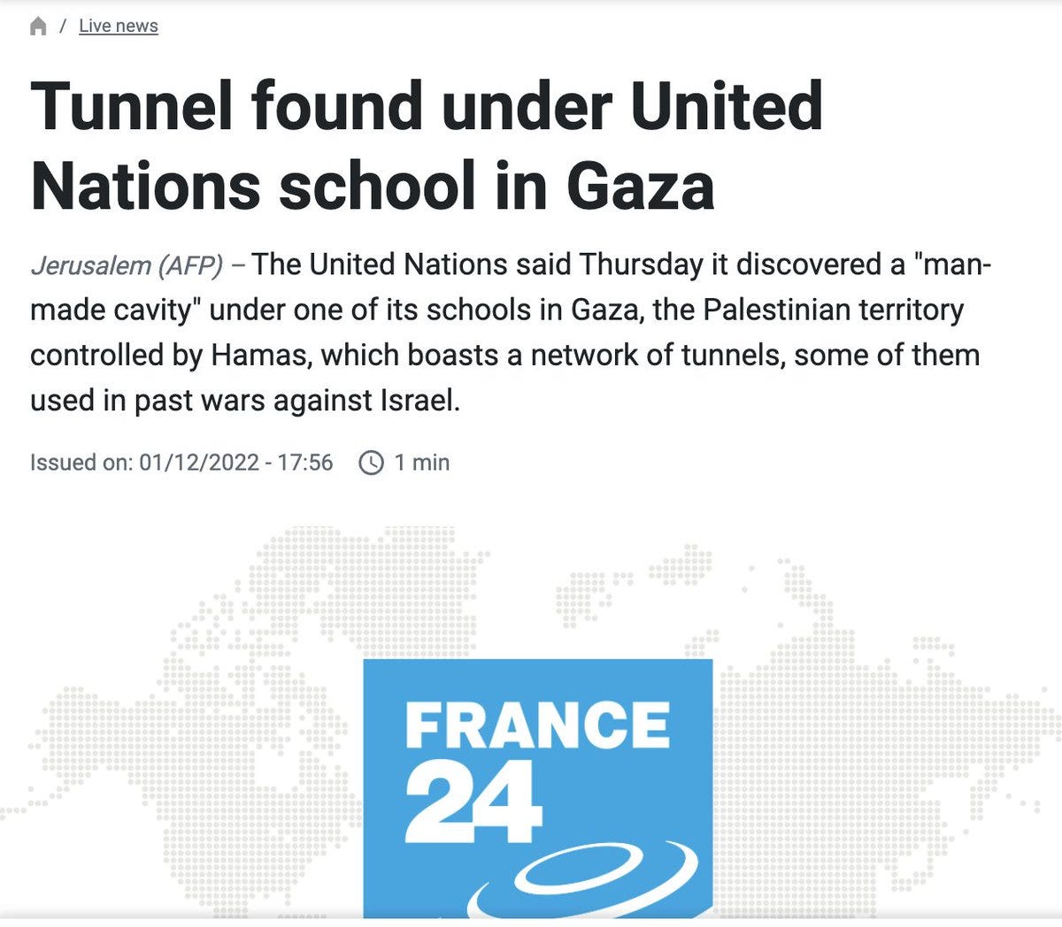 When recently questioned about the possibility of Hamas tunnels under UNRWA buildings, the UN representative flatly denied it. But earlier in 2021 and 2022 UN itself admitted to having found such tunnels: