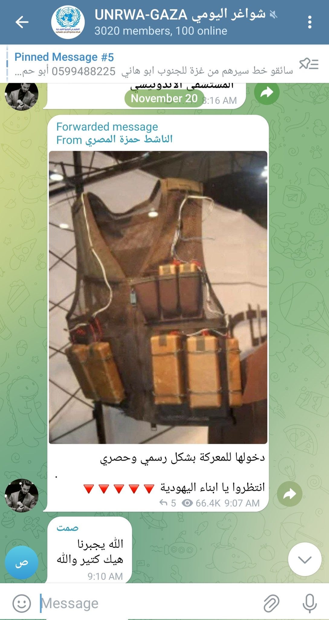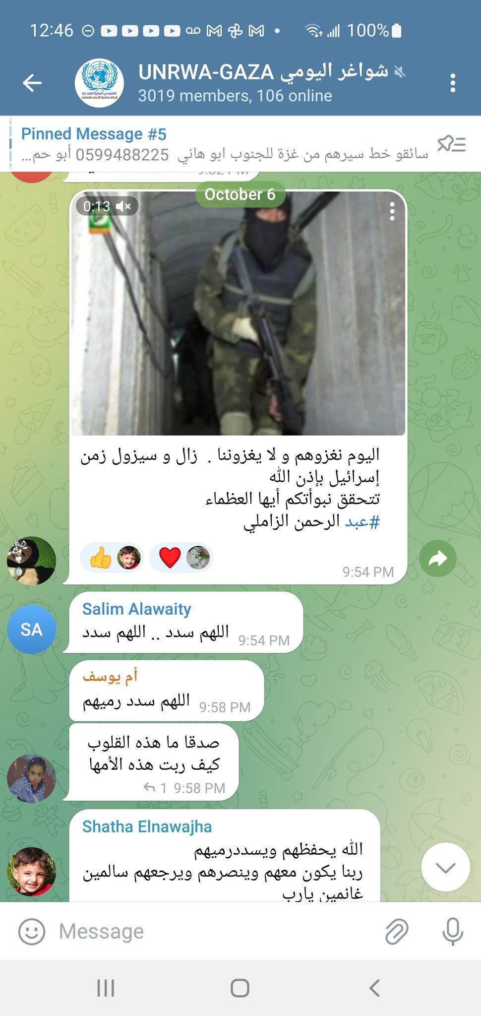 But since the world media organizations are not known for trusting IDF, the bigger revelations ultimately became known when the world gained access to UNRWA’s internal Telegram chat group, which had >3,000 members (UNRWA teachers).
