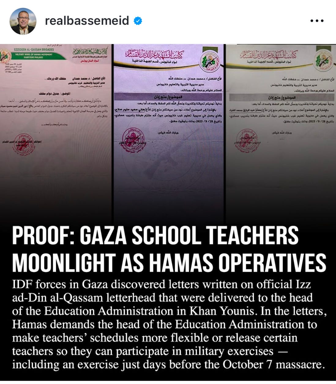 Or these official letters signed by Hamas telling the Education Administration to release some of the Hamas militants from teaching duties, so that they could participate in military training.