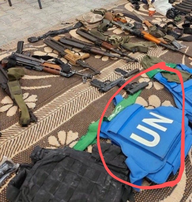 The first signs of UNRWA direct involvement in October 7th attacks came when a story surfaced that one of the abductees, who was held hostage for almost 50 days, had been held at a house of UNRWA teacher. Soon after, evidence emerged of weapons present in the agency’s facilities. "There is not an UNRWA site, school, mosque, or kindergarten in which we didn't find weapons. None." - Col. Elad Shushan, Head of IDF's 646th Brigade (source)