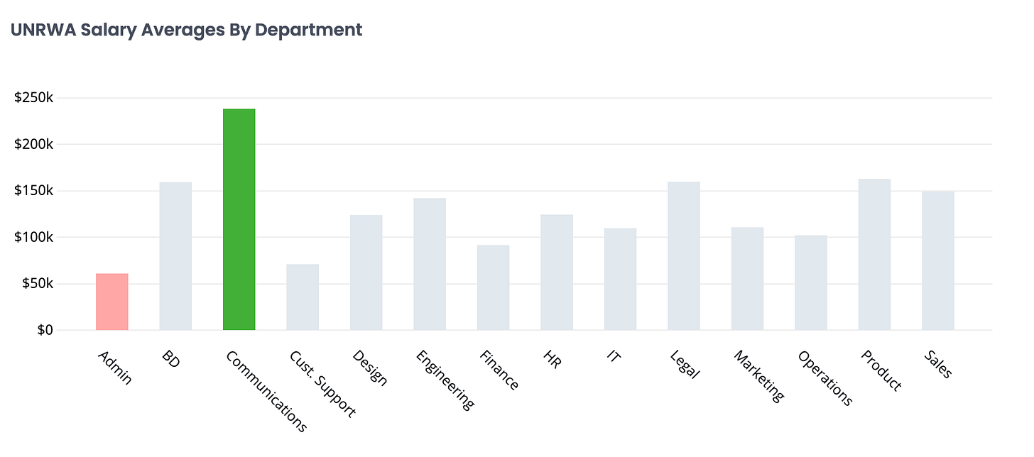 This is in sharp contrast to the $450/month (or $5,400/year) average non-UNRWA salary in Gaza (the majority of UNRWA employees in Gaza are people from Gaza).
